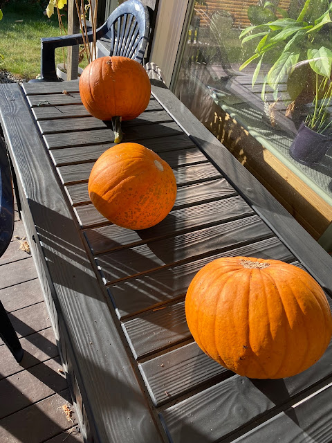 Så høstet jeg gresskarene. Her ligger de og tørker litt i sola.