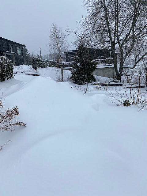 Enda mer snø, og jeg kom meg ikke opp oppkjørselen. Det måtte måkes mer!
